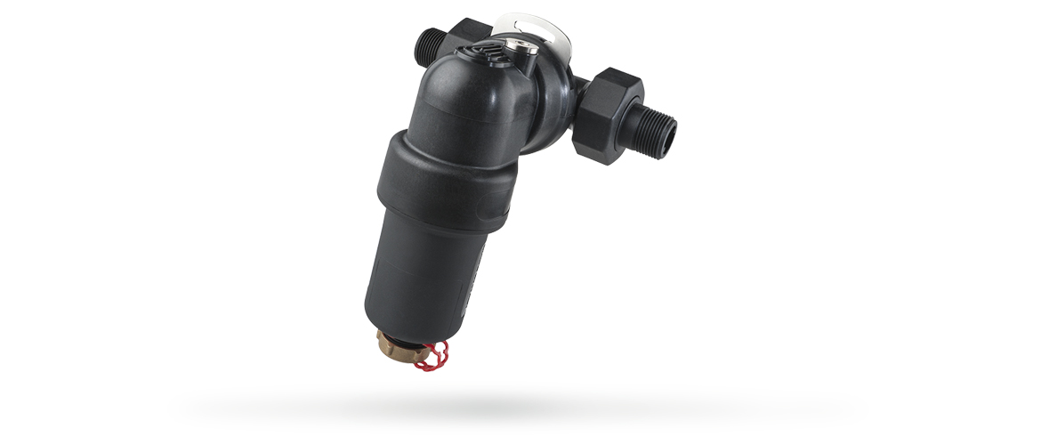 ensuite, le passage continu du fluide à travers le filtre pendant le fonctionnement normal porte graduellement au retrait complet de toutes les particules. FDM-3 doit être installé en respectant le sens de flux indiqué par la flèche reportée sur le raccord en T, et avec le corps toujours en position verticale; le groupe de raccord rotationnel de FDM-3 permet d'adapter le filtre à toutes les inclinaisons des conduites. Le clip métallique spécial permet un démontage rapide du filtre. Sur la tête, FDM-3 est doté d’un bouchon fileté, qui peut être utilisé aussi bien pour la purge que pour le remplissage de l’installation avec des additifs chimiques de protection/entretien. Pour l'installation, il est conseillé de prévoir des robinets d’arrêt sur les deux raccords du filtre.