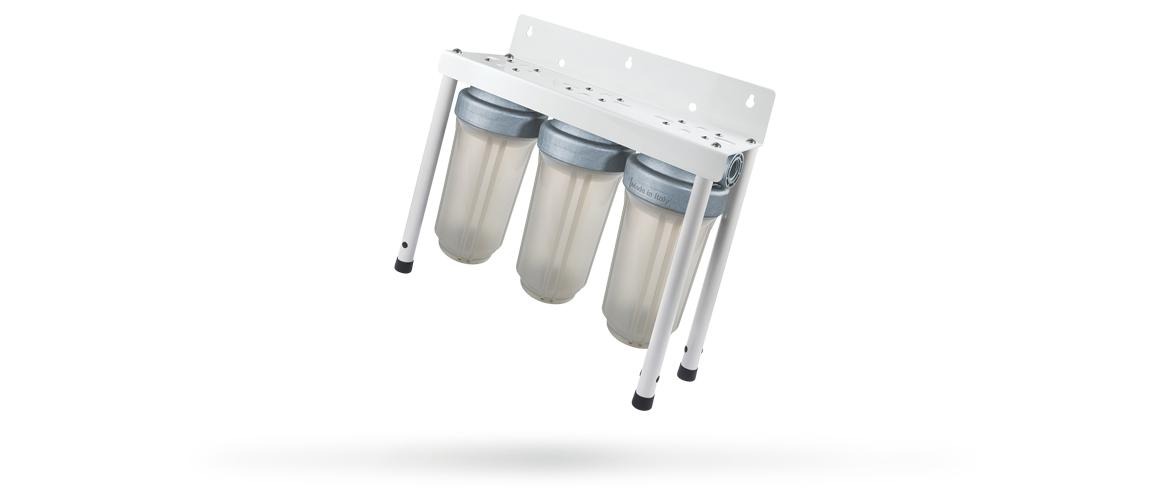Ils peuvent être installés sur le mur ou fixés au sol, offrant une plus grande flexibilité et une plus grande fiabilité, même dans des situations difficiles. Ils sont destinés, à la fois, aux usages domestiques et industriels. Grâce aux propriétés antimicrobiennes des agents à base d'argent, ces corps bloquent la prolifération des micro-organismes et le développement de la charge bactérienne. DP BIG F SANIC est disponible dans les versions brevetées MONO, DUO et TRIO, faites d'une seule tête monobloc : cette solution augmente les stades de filtration et réduit considérablement les risques de pertes d'eau en améliorant l'efficacité du traitement. Les filtres bactériostatiques DP BIG F SANIC sont caractérisés par leurs raccords ENTRÉE / SORTIE 1" et 1" 1/2 à filetage en plastique BSP ou NPT et fonctionnent parfaitement avec les cartouches antimicrobiennes SANIC BIG de 10" ou 20" de hauteur. Une large gamme d'accessoires et de pièces de rechange complète cette offre.