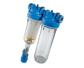 Двухстадийный водяной фильтр с самоочищающимся фильтром предварительной очистки